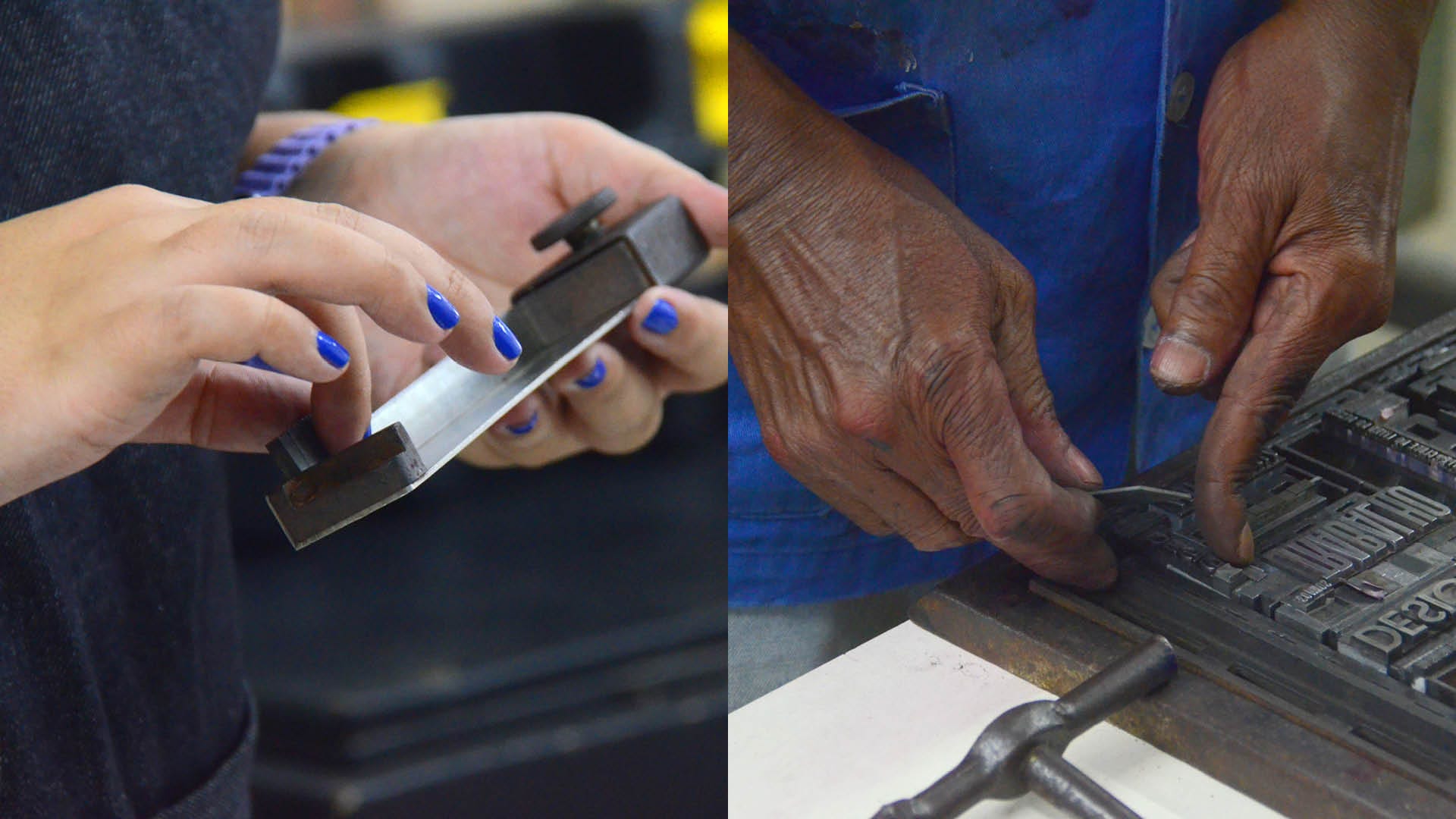 acredito que esse é o primeiro fator que faz com que a gráfica-escola seja um espaço de scholè. pela reapropriação das tecnologias analógicas de impressão, nós engajamos em um paradigma produtivo que nos força à retomar a dimensão material da nossa prática, da mão, do corpo. na elaboração com esses meios de (re)produção, por assim dizer, restauramos o vínculo entre o ofício e o projeto.