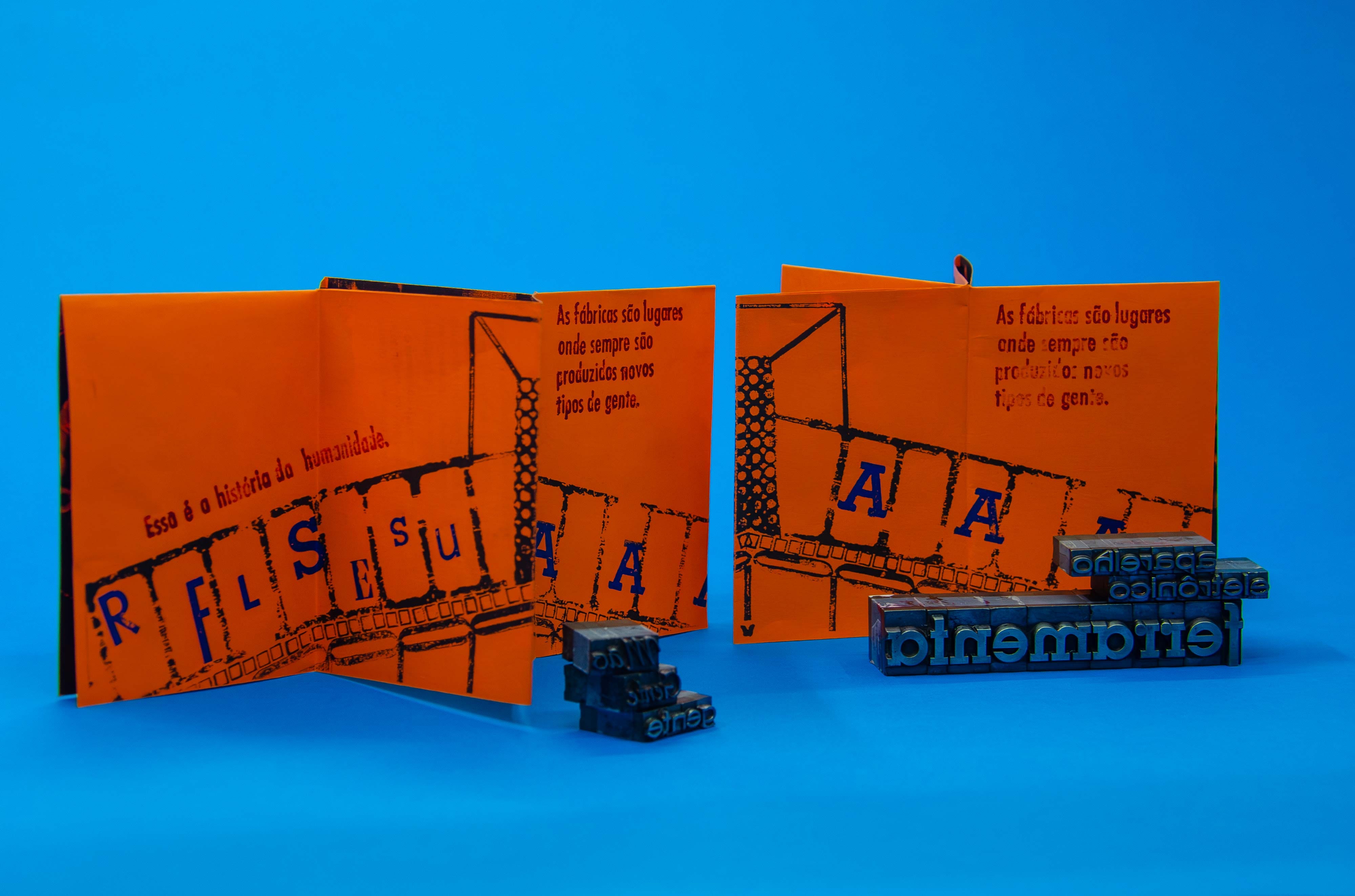 dentre várias experiências grevistas articuladas ali no campus e na gráfica-escola, o resultado mais visível de nossa atitude foi “a fábrica de flusser”, uma publicação que combina três métodos de impressão diferentes para traduzir graficamente o texto do nosso filósofo do design preferido. a publicação foi selecionada pela curadoria da bienal da ADG no ano passado como destaque e fomos receber esse prêmio lá em aracaju, com a viagem viabilizada pelo trabalho desalienado que havíamos realizado na própria gráfica.