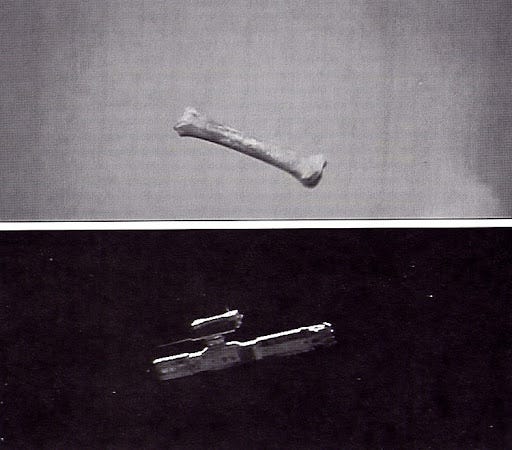 eu diria que agrupar essas duas cenas em uma mesma ideia de “pensamento projetual” é de um nível de abstração tão alto, mas tão alto, que perde utilidade. imagino que ninguém diria que essas coisas são a mesma coisa: há tanta diferença material que é necessário um corte para definir categorias diferentes – por isso, me pergunto qual a intenção ao pensar nesse tal “pensamento projetual”. ainda assim, concordo que há uma analogia a ser feita aí: são expressões do ser humano modificando seu entorno. poderia ressaltar o efeito estético disso no importantíssimo corte de kubrick em 2001; ou o clipe de pearl jam, do the evolution; ou ainda a montagem de dziga vertov em um homem com uma câmera.